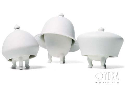 荷蘭設(shè)計(jì)師Jorine Oosterhoff設(shè)計(jì)了一套名為“瘋狂帽子”的搞笑瓷碗。看上去就像是一群人被帽子扣住了頭、蒙住了眼,而它們還非要執(zhí)拗地走下去,一邊嘴里還在說:“怎么天突然黑了?”Jorine Oosterhoff甚至還給它們起了搞笑的名字:瘋子、瘋魔和半瘋(左起)。 約¥2100/只