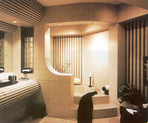 3)浴缸前墻采用磚砌貼瓷磚時,地磚最好先貼至墻下方,然后再貼壁磚,以避免產生破口。