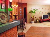 比如家中的地板,為了配合東南亞風(fēng)格的自然感覺,并沒有采用普遍的木地板全鋪,而是采用水泥地面直接上清漆的方法,局部施以木地板引導(dǎo)即可。最后出來的效果也很自然,而且大大降低了造價。不過有一點(diǎn)需要提醒大家注意,由于漆的顏色沒有選準(zhǔn),所以和設(shè)想的還是有一些距離;其實(shí)地平漆的選擇具備更多的選擇特性,可以根據(jù)個人需求先制造小塊的樣板,這樣更利于整體直觀的感受,也不至于出現(xiàn)顏色與想的不同、與家具不配套的煩惱了。