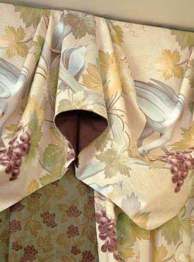 窗簾:絲絨靠背沙發(fā)是這處小空間的設(shè)計(jì)靈感來(lái)源,雖然沙發(fā)上的條紋色彩豐富,但是這些顏色卻過(guò)于柔和,因此設(shè)計(jì)師為羅馬簾特意選擇了亮麗的圖案。紫色的葡萄圖案正如一劑***注入進(jìn)來(lái),讓羅馬簾立刻充滿(mǎn)了生機(jī)和活力,而窗簾則選擇了綠色和咖啡色為主的色調(diào),以此來(lái)烘托羅馬簾。在賦予設(shè)計(jì)化的帷幔和窗簾的組合下,餐廳呈現(xiàn)出了正式場(chǎng)合的莊嚴(yán)。層疊窗飾的實(shí)用功能并不很大,卻起到了很好的裝飾作用,而這間餐廳窗簾的功用主要是來(lái)自羅馬簾。帷幔既有立體感,還能看到鳥(niǎo)的裝飾圖案。