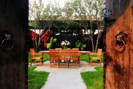 從玻璃長(zhǎng)廊步入側(cè)房,是洗衣房和清潔室,盡頭的小房間是儲(chǔ)酒室,出儲(chǔ)酒室便過(guò)渡到第二進(jìn)院落,這是博龍先生最喜歡的院子。院子里綠草茵茵,中央鋪一張長(zhǎng)桌,再擺上幾把木椅,白天有陽(yáng)光有青草,能嗅到淡淡的白果樹的清香,是天然的Party場(chǎng)所,晚上喧鬧散去,品一杯紅酒看幾點(diǎn)燭光,很愜意很真實(shí)。