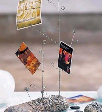 漂亮的卡片、重要的名片不用愁沒地方放,舊鐵絲也不要扔,只需要找一塊石頭,就可以解決所有問題:用幾根鐵絲擰在一起,不時(shí)地把枝杈留出,隨意折出自己想要的形狀。每個(gè)枝杈的末端要拿木棒纏出一個(gè)類似彈簧的夾子。最后再把樹根固定在石頭上,如果不想小樹太孤單,再為小樹做幾個(gè)可愛的小蘑菇。