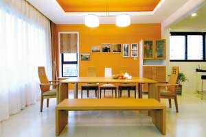 無論是貼壁紙還是重新刷涂料,都可以在半個(gè)月內(nèi)完工。一般來說,重貼壁紙需二三天的工期和三天左右的通風(fēng)期;刷涂料則需要長一些的時(shí)間,一般吹干、散味、通風(fēng)共需十天左右。據(jù)星藝設(shè)計(jì)師建議,更換壁紙或重新刷涂料的部位設(shè)在醒目處,面積也不宜過大,如電視、沙發(fā)或床的背景墻;色彩則可根據(jù)個(gè)人喜好,選擇大紅、橙色、熒光粉等跳躍的暖色,這些顏色都適合作為非臥室空間的背景色。
