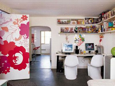 二、就客廳而言,圓弧線條酒杯轉(zhuǎn)椅和潘東椅,沙發(fā)旁的圓角邊柜及客廳與陽臺(tái)的過渡墻上的圓角,都傳遞出濃濃的現(xiàn)代感。而棱角平直的白色吸頂燈、雙層“L”形書架及茶幾,則給人干凈、利落、明快的感覺。如此直線加圓弧混搭出的客廳將線條的變化之美印映于視覺之上。