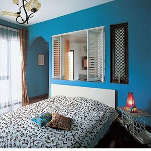 三、這間屋子本來是一個(gè)客廳,但是主人卻把它改成了一個(gè)充滿了神秘誘惑的***藍(lán)色臥室,樓道里性感嫵媚的玫紅仿佛散發(fā)著迷幻的香。仿竹子造型的木榻,盡管就是本地造,卻有東南亞家具的感覺。