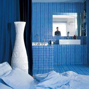 概要: 一、因?yàn)闊釔鄞蠛?,主人把與睡眠區(qū)相連的洗浴區(qū)設(shè)計(jì)成了海洋般清新的藍(lán)色。馬賽克的圖案和配色是他親自設(shè)計(jì)定稿后找廠商定做的,非常規(guī)的尺寸增強(qiáng)了線條的連貫性,三種不同層次的藍(lán)色拼接,猶如一道道海浪跳躍在空間之中。