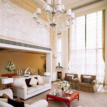 給你一個(gè)空間作為客廳,很多人會(huì)毫不猶豫地選擇高挑的空間,為什么呢?因?yàn)闆]有向上的拘束,裝飾上可以掛很漂亮的吊燈,墻面造型可以任意延展,多了許多方案的可行性。
