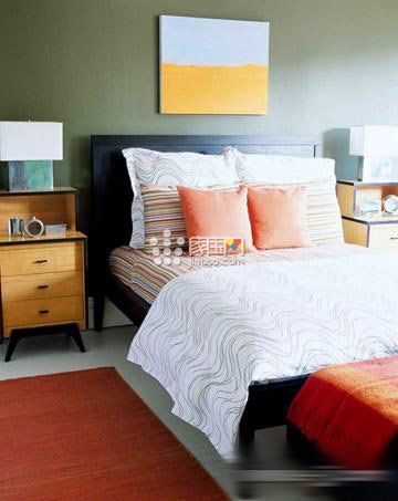 為了保證干凈、現(xiàn)代的外觀,選擇與直線相配的被套,并與現(xiàn)代感的家具相協(xié)調(diào)。限制圖案的顏色,使對比感強烈的圖案穩(wěn)固不散亂。多彩的條紋床單和枕頭作為基礎,上面是簡單的灰白色羽絨被,帶有精巧的波浪紋樣。