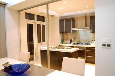 建議一:空間改造要巧 每個廚房空間在建筑時均會有防火墻或過頂梁等基本結(jié)構(gòu),對廚房隔墻改造時,一定要考慮結(jié)構(gòu)的現(xiàn)有情況,做到“因勢利導(dǎo),巧妙利用”。如要改造的墻體上有過梁,可以保留此過梁,將它改造成“開放式廚房”的吧臺燈光頂,而不能將它拆除,以免影響到建筑結(jié)構(gòu)的穩(wěn)定性。