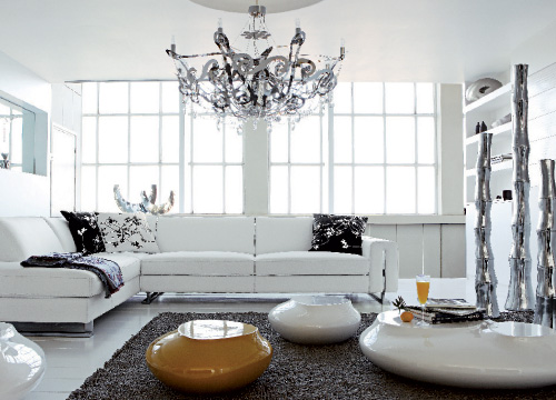 在寬敞的空間里,使用這種由多個(gè)單元組合的茶幾,可以打破固有的沙發(fā)、茶幾、電視柜三條平行線模式,令客廳環(huán)境更富于變化和動(dòng)感。茶幾的顏色大體可以與沙發(fā)相同,不會讓人感覺空間被過分占用,其中穿插一兩個(gè)跳躍的顏色,更能制造視覺上的起伏感。注意茶幾和地毯之間的協(xié)調(diào),過于沖撞的色彩和風(fēng)格都會導(dǎo)致凌亂的效果。
