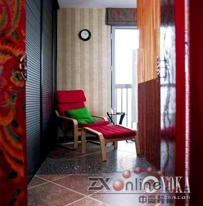身為設(shè)計(jì)師的郭筱玉認(rèn)為,自己的家是最佳的實(shí)驗(yàn)室,客戶那里不能做的,自己都可以嘗試,想要家具有視覺(jué)有沖擊力,又不想使用慣常的單色重涂,不如就來(lái)個(gè)徹底的沖撞——紅與綠,大俗的色彩,卻又是最民族的色彩,包含了太多的色彩語(yǔ)匯與寓意,沒(méi)有比它們更適合的色彩了。一路傾瀉下來(lái),處處濃墨重彩。門廊、客廳、臥室,甚至連衛(wèi)生間都不放過(guò),紅色依綠色而明媚,綠色依紅色而濃郁,到處閃亮青春的熾熱與無(wú)忌。沒(méi)有摻雜任何的灰調(diào),是最徹底的紅與綠的色彩搭配,但設(shè)計(jì)師熟稔地把握著色塊的體量關(guān)系,不完全放縱,才能完全掌控空間對(duì)于自己的服務(wù)。這是一份“危險(xiǎn)”的色彩試卷,郭筱玉卻答得精彩。