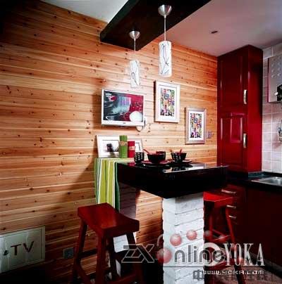 狹小廚房里的餐桌兼吧臺(tái)