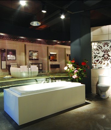 黑色、紫色,花卉,一派自然中繁榮的景象,把它們運用在衛(wèi)生間中也一樣溫馨,再配上幾只紅白色花卉和帶有神秘感的紫色線簾,更顯得素雅、別致。