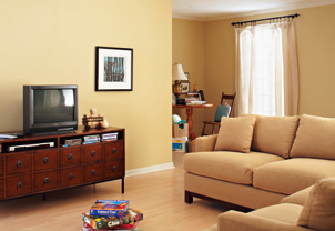 概要: 八月正是陽(yáng)光明媚、空氣清新的季節(jié)。別讓你的視線停留在所謂簡(jiǎn)約的黑白灰中,帶著游戲的心情,把墻面重新涂刷、把家具和配飾重新搭配組合,不需要很多的技巧,重要的是你能從中獲得新鮮的生活樂(lè)趣。當(dāng)黯淡、蒼白的家居變得充滿活力時(shí),邁向美好生活的腳步是不是也變得輕快了。原來(lái)黯淡的客廳,沒(méi)有色彩的墻面和家具,雖然舒適但卻毫無(wú)陽(yáng)光氣息。