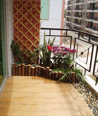 如果是陽臺(tái)面積較大又位于頂樓,應(yīng)該屬于“露臺(tái)”??稍陉柵_(tái)上加了透明的弧形采光頂,使這個(gè)陽臺(tái)可以當(dāng)作一個(gè)房間使用。陽光通過采光板灑向用韓國(guó)文化石做的墻壁,以及青石板鋪成的地面,而且也照亮了“人”字型的鵝卵石小徑……這些園林造景手法,用在這個(gè)陽臺(tái)上,給人濃濃的休閑氣息。