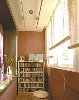 陽臺(tái)頂部可沿用中國(guó)傳統(tǒng)建筑中“吊梁”的工藝手法,做出兩道紅櫸木的“假梁”。而墻壁采用外墻花磚,地面則是色彩樸素的西班牙地磚。在鐵藝暖氣罩的上方墻面上,特別采用了“板巖”做裝飾。這樣內(nèi)外結(jié)合、深淺有致的設(shè)計(jì),使整個(gè)陽臺(tái)的氣氛與眾不同。