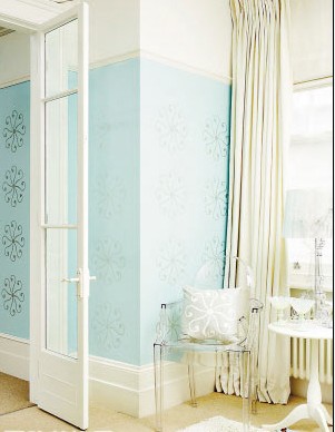 說起北方的冬天,人們總會(huì)想起那一片銀裝素裹的世界。秋冬墻面的流行色也取材于北國(guó)冬天,讓南方城市的人們也可以感受到雪世界的寧靜。因此,雪白、淡藍(lán)色、紫色和銀色這幾種色系也成為秋冬的涂料主打色,而且還可以創(chuàng)新地仿效壁紙效果,在淡藍(lán)色的墻面上用銀色涂料畫上的雪花或其他圖案。此外,如果房間里可以搭配清透的水晶吊燈,或者選擇一些深色的毛皮物料做裝飾,那么整體的家居裝飾效果將更好。