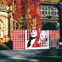 上個(gè)世紀(jì)60年代風(fēng)行美國(guó)的波普藝術(shù)是大眾文化與商業(yè)美術(shù)風(fēng)格中最具影響力的藝術(shù)流派。就詞義而言,波普就是大眾、流行的意思,它以流行的商業(yè)文化形象和都市生活中的日常事物為題材,采用的創(chuàng)作手法也往往反映出工業(yè)化和商業(yè)化的時(shí)代特征。Werner Berges設(shè)計(jì)的“藝術(shù)邊緣2005”壁紙就顯示了純正的波普藝術(shù)。畫面是一個(gè)笑得夸張而奔放的時(shí)尚女郎,以剪影的手法將頭像處理得簡(jiǎn)單明了,在色調(diào)上或以濃度較高的紅、白、黑為主,或以明亮的藍(lán)、白、黃為主,帶有強(qiáng)烈的波普風(fēng)格和視覺(jué)沖擊力。這些壁紙本來(lái)都是用作戶外展示背景的,但因?yàn)閳D案很有個(gè)性,很多時(shí)尚人士會(huì)選擇用到室內(nèi)背景墻。