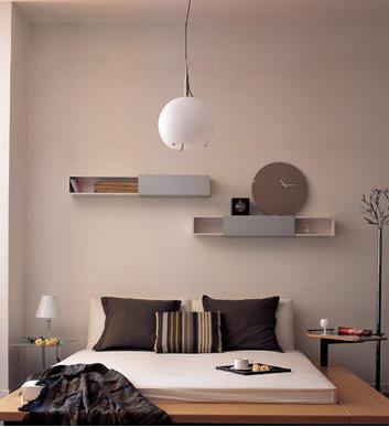利落的線條充滿整個(gè)房間,原木色的寬邊床可移動(dòng)的小幾設(shè)計(jì)周到,背景墻上錯(cuò)落安置的CD架,利用材料的多元變化和幾何造型的有機(jī)融入,讓視覺呈現(xiàn)出舒緩的起伏,金屬衣架豎立要床旁,既實(shí)用又強(qiáng)調(diào)了空間的設(shè)計(jì)感?!?/P>