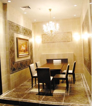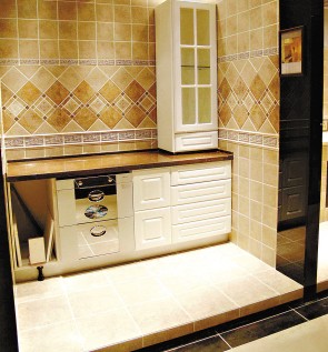 這款由瓷磚設計的空間,讓人感覺到充滿歐陸古典味道。如果仔細觀察,你可以看到顏色過渡很自然,磚面起伏,構(gòu)造也比較出色。