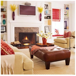 花大錢買些顏色中性,質(zhì)量上乘的家具是很值得的。烙上你的印記:如果你喜歡鄉(xiāng)村風(fēng)格,不妨選擇方格紋棉布窗簾和中國(guó)陶瓷作為裝飾。選擇線條流暢的家具,擺設(shè)輕松隨意,圖中的花紋圖案地毯在視覺(jué)上起了銜接的作用。