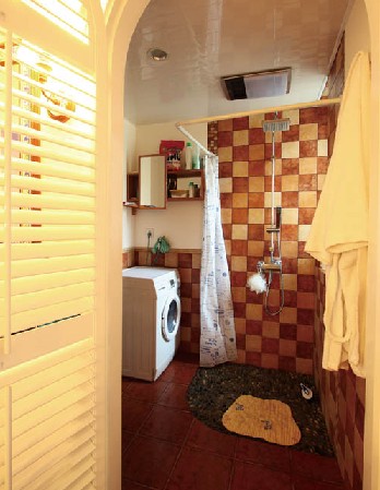 衛(wèi)浴間的干濕分離,早成共識(shí)。但其收納功能及方法選擇,卻人見仁智、不盡相同。本浴室則選擇向立體空間發(fā)展,效果自然是別具情調(diào),值得借鑒。