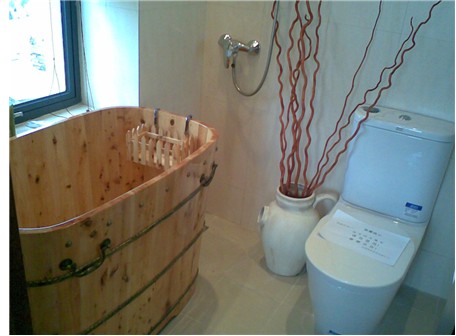 木桶以它的優(yōu)勢和貼近自然的感覺贏得了大眾的喜愛,即使小型衛(wèi)生間 同樣適用。木質浴桶與浴缸 不同,它采用橢圓形的深型設計,由于它占地面積小,無須安裝,可以一步到位。消費者在選用浴桶的型號、款式時要注意衛(wèi)生間面積的大小以及門框的寬度。