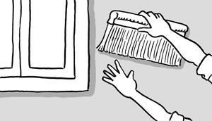 用濕毛巾或濕海綿清除壁紙面上的余膠。