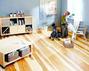 (3)地板基層。實(shí)木地板基層有兩種做法:一種在水泥樓板上刷冷底子油一遍,鋪設(shè)木龍骨,最后釘?shù)匕?;另一種方法在龍骨上先鋪一層細(xì)木工板,或者是毛地板,然后釘?shù)匕?,采用這種方法,地板受力均勻,結(jié)構(gòu)牢固。復(fù)合地板安裝方便,基層也有兩種作法:一種先作找平層,然后鋪設(shè)PVC墊層,之后鋪設(shè)復(fù)合地板;另一種在水泥找平層上,鋪設(shè)木龍骨和毛地板,兩鋪復(fù)合地板。