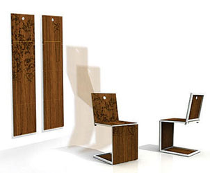 在日常生活中,折疊式椅子隨處可見,因?yàn)樗梢杂行У毓?jié)約寶貴的空間。不過對(duì)于家里空間過于局促的朋友,即便是折疊起來的椅子,恐怕還是不能完全令人滿意,那何不把椅子掛到空無一物的墻上去呢?于是設(shè)計(jì)師就將椅子的椅背直接設(shè)計(jì)成了衣架的樣子,平時(shí)可以直接將衣服掛在上面,當(dāng)椅子不用時(shí),還可以像掛鉤一樣將椅子直接掛在墻上,多方便呀!