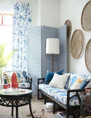 4、竹制的屏風噴上了淺藍色,代替了原來的床頭板,并且讓視線上延,強調(diào)了房間天花板的高度。