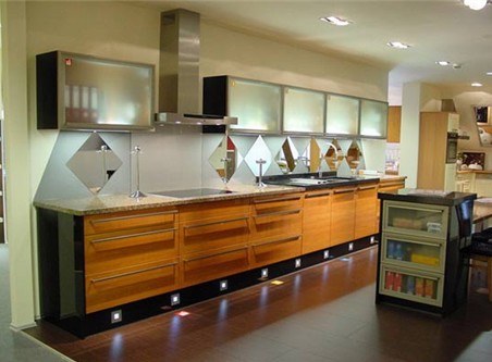 1、L型:將清洗、配膳與烹調(diào)三大工作中心,依次配置于相互連接的L 型墻壁空間。最好不要將L 型的一面設計過長,以免降低工作效率,這種空間運用比較普遍、經(jīng)濟。