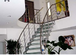 2、弧型梯 ——以一個(gè)曲線來(lái)實(shí)現(xiàn)上下樓的聯(lián)結(jié),美觀活潑,而且可以做得很寬,行走起來(lái)沒有直樓拐角那種生硬的感覺,是行走起來(lái)最為舒服的一種,但占用面積較大。這類樓梯不能成批生產(chǎn),它們始終屬于手工精制品。能夠付得起這種手工費(fèi)用的人是不問價(jià)錢的;