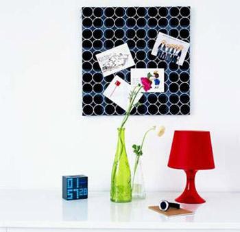 自己動手DIY一個畫框,把平時收集來的有趣賀卡,錯落地插在上面,而黑色圓底的背景板可以更好地襯托出賀卡的裝飾效果。
