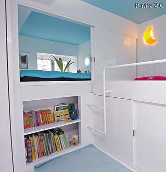 女兒睡房和主人房以趟門分隔,加高的地臺(tái)和睡床下方,有大量的儲(chǔ)物空間。