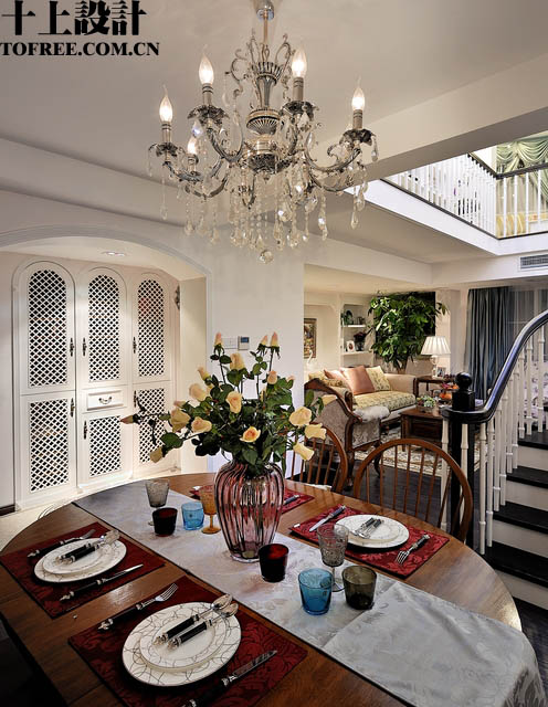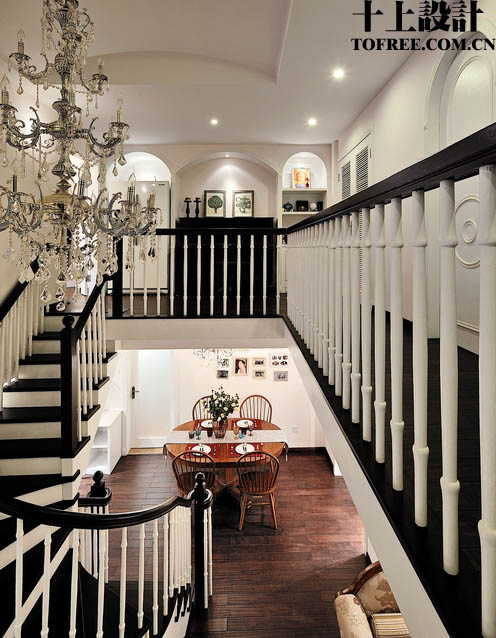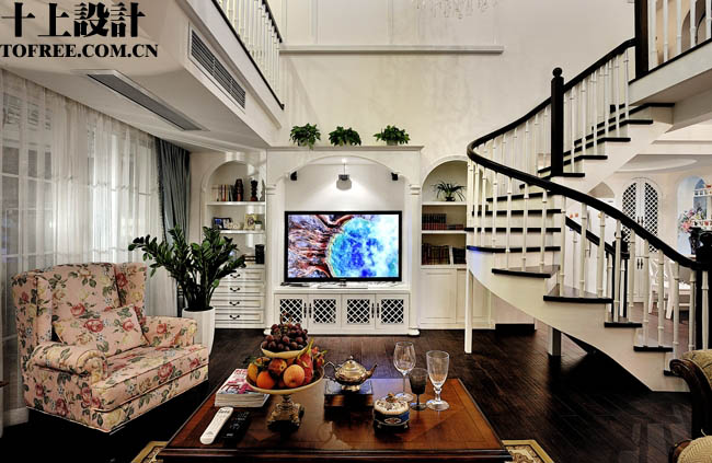 現(xiàn)在看主要的一面,這邊也是原先布滿了建筑管道,我們把中間的客廳的上空打掉,人工做了一個(gè)漂亮的高廳,也利用這個(gè)高廳,將樓梯巧妙的安置在這個(gè)區(qū)域,又可以形成景觀,又不占面積