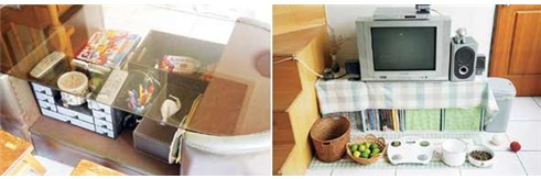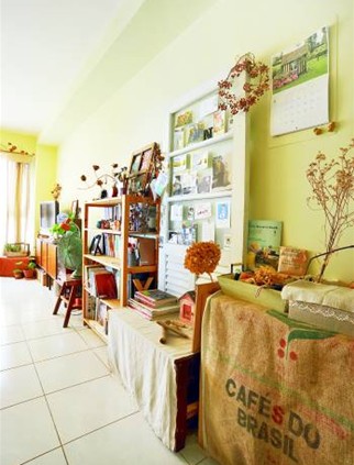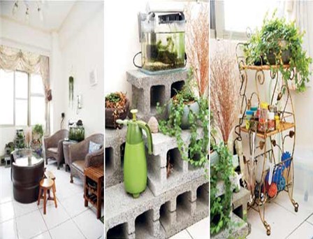 2.客廳養(yǎng)了兩缸小魚,把空心磚疊起來放在墻邊當(dāng)架子,中間的空格還可以收納物品。
