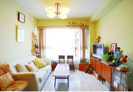 由客廳及餐廳組成的公共區(qū)域,則刷上不同的墻面色彩, 為不同功能的區(qū)塊作出定調(diào)。溫暖的巧克力色搭配簡單的原木餐 桌,營造出一處溫馨美好的用餐角落;考慮到小空間的動線,客廳選用了較輕巧的兩人沙發(fā),再搭上幾把單椅,機能性更高,淺色系沙發(fā)搭配透光性良好的薄簾窗紗,使得戶外光線能大量地延攬入室,空間明亮也相對能增加寬敞感。雖然實 際坪數(shù)不到20坪,但藉由色彩的配置、家具的擺放,一樣能打造出這樣具有鮮明個性的居家空間。
