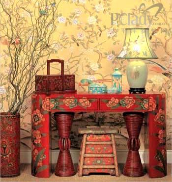 除了三"實"的特點,藏式家具還有個特點就是沉穩(wěn)而不失活潑。四四方方便是沉穩(wěn),其活潑體現在它的顏色和圖案上。藏式家具的顏色就跟牧區(qū)女人的裙子那般絢麗多彩。它的底色多選用紅、黃、褐三種顏色,至于圖案的顏色選配和圖案式樣就更豐富了。