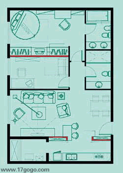客廳 因為空間比較小,不建議做更多的設(shè)計和擺設(shè),簡單的家具和沙發(fā)就可,為顯居室溫馨浪漫,可選用碎花布藝沙發(fā)來裝點空間。
