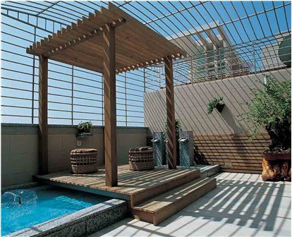 第二步:做設(shè)計一定要告訴設(shè)計師,陽臺上除了布置景觀外,有沒有其他設(shè)計。如果陽臺上搭玻璃棚,那么栽種的植物要喜濕喜熱。如果陽臺上有一角要做儲藏室,那么那塊角落附近一定不能種太多植物,否則儲藏室有潮氣。