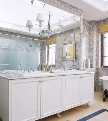 用天然大理石作為浴室柜的臺面,要盡量避免唇膏等有顏色的化妝品涂到臺面上,這種有油性的顏色會滲透到石材里。