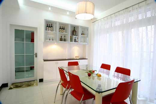 餐廳的窗簾和桌布,質(zhì)地以化纖材料制品較好,因為棉織布料易吸收食物氣味,又不易洗滌,盡可能不用,在有限的空間中,可適當放置少許植物或花卉,使餐廳充溢動感與生機,不僅可以調(diào)節(jié)氣氛,還可以美化進餐環(huán)境。