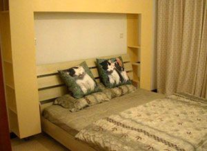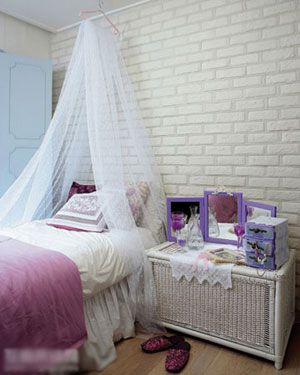 就一般床的構(gòu)造而言,床頭的高度欠缺氣勢(shì)。因此,對(duì)床頭的那面墻有必要進(jìn)行特別的裝飾,如用板材或裝飾布等,裝飾出幾平方米的面積;此外,用紡織面料制作的床頭的“床?!保盟迫说念^飾,大有可為,如用窗簾布垂掛、對(duì)開等造型,猶如給床戴上了花頭巾。