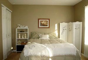 與床頭相對(duì)的那里墻,最好不要放過多、過高的家具,避免“堵 ”的不良視覺效應(yīng)。如果床對(duì)面的家具上有通體的大鏡子或墻上裝一面大鏡子,即可擴(kuò)張空間,又映出床頭的景色,悅目心舒。此外,床對(duì)面貼張大的風(fēng)景畫,也很開眼界;在床尾的地面上鋪一小塊工藝地毯,效果挺不錯(cuò)。