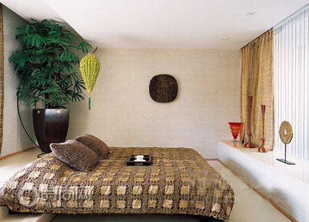 4.床的擺放構(gòu)思巧妙。床頭利用了臺階的第一級,而整個地臺也充當(dāng)了床頭柜的作用,床與地臺從空間結(jié)構(gòu)上處在一個層次上,而“T”字形的擺放方式豐富了空間的感覺。