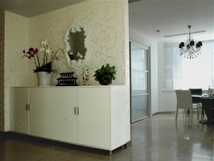 廚房的壁面以方便清潔,不易受污、耐火、抗熱、表面柔軟,又具視覺美觀者為最佳考慮。塑膠壁紙、有光澤的木板、經(jīng)過加工處理或涂上透明的塑膠漆的木材,皆是極佳材質(zhì)。目前市面上有已獲準(zhǔn)防火鑒定的塑膠壁材、瓷磚等,而瓷磚因具多樣的色彩花色,視覺效果好,極受青睞。