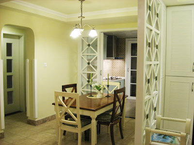 概要: 這是套案例的房子套內(nèi)面積近130平,房型不錯,空間也夠大。這是進(jìn)門的玄關(guān),給人簡潔清新的感覺。鞋柜的上方擺放一些小飾品,與墻面的繪畫相印成趣?! ⌒P(guān)的全景,墻面及門都是淺色系。家具采用深色系的,增加了空間的厚重感。鞋柜旁擺放的換鞋凳與背后的鏤空隔斷同一色系,將田園風(fēng)進(jìn)行到底。 鏤空隔斷的另一面是餐廳。屏棄了田園風(fēng)的花色系,延用簡潔格調(diào)。