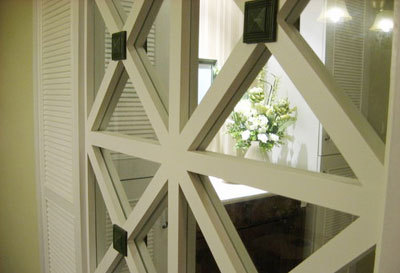 給鏤空隔斷來一個特寫,中間的方塊是很穩(wěn)重的草綠色,是買成品木花油漆后粘上去的,油漆后有經(jīng)過打磨做舊的處理。有時候設(shè)計(jì)可能很重要,其實(shí)施工工藝來得更加重要一些,不僅決定著設(shè)計(jì)的成敗,更決定著日后生活的舒適度。