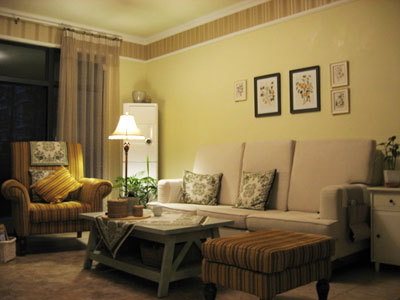 這是客廳??赡苓@個家的田園風(fēng)格,在客廳體現(xiàn)最淋漓盡致了。